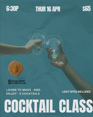 Come learn to make - and enjoy - three seasonal cocktails with our friends from Coquetel Collective. Light Bites included.